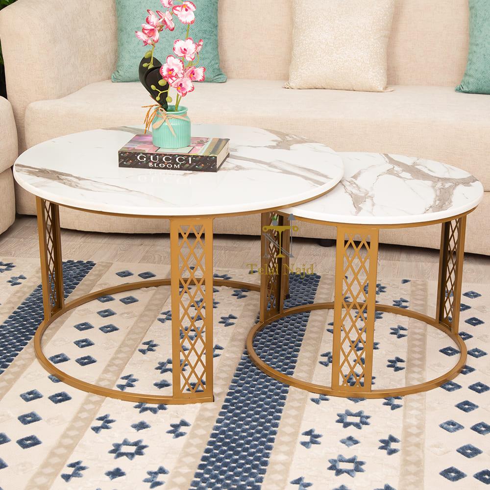 • تصميم دائري: طاولتين ضيافة بتصميم دائري عصري وجذاب.