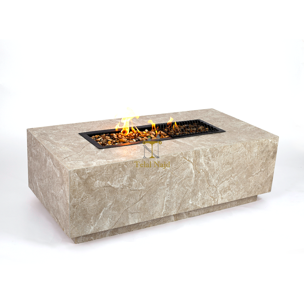 منقل غاز أنيق مصنوع من بديل الرخام الحجري عالي الجودة، بتصميم عصري يجمع بين المتانة والجمال، يمنح لمسة فاخرة للمجالس والجلسات الخارجية مع سهولة الاستخدام والتنظيف.